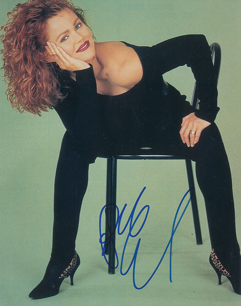 Playful color glossy 8 x 10 photo of Carlisle posing on a chair, signed in blue felt tip. In fine condition. RR Auction COA.