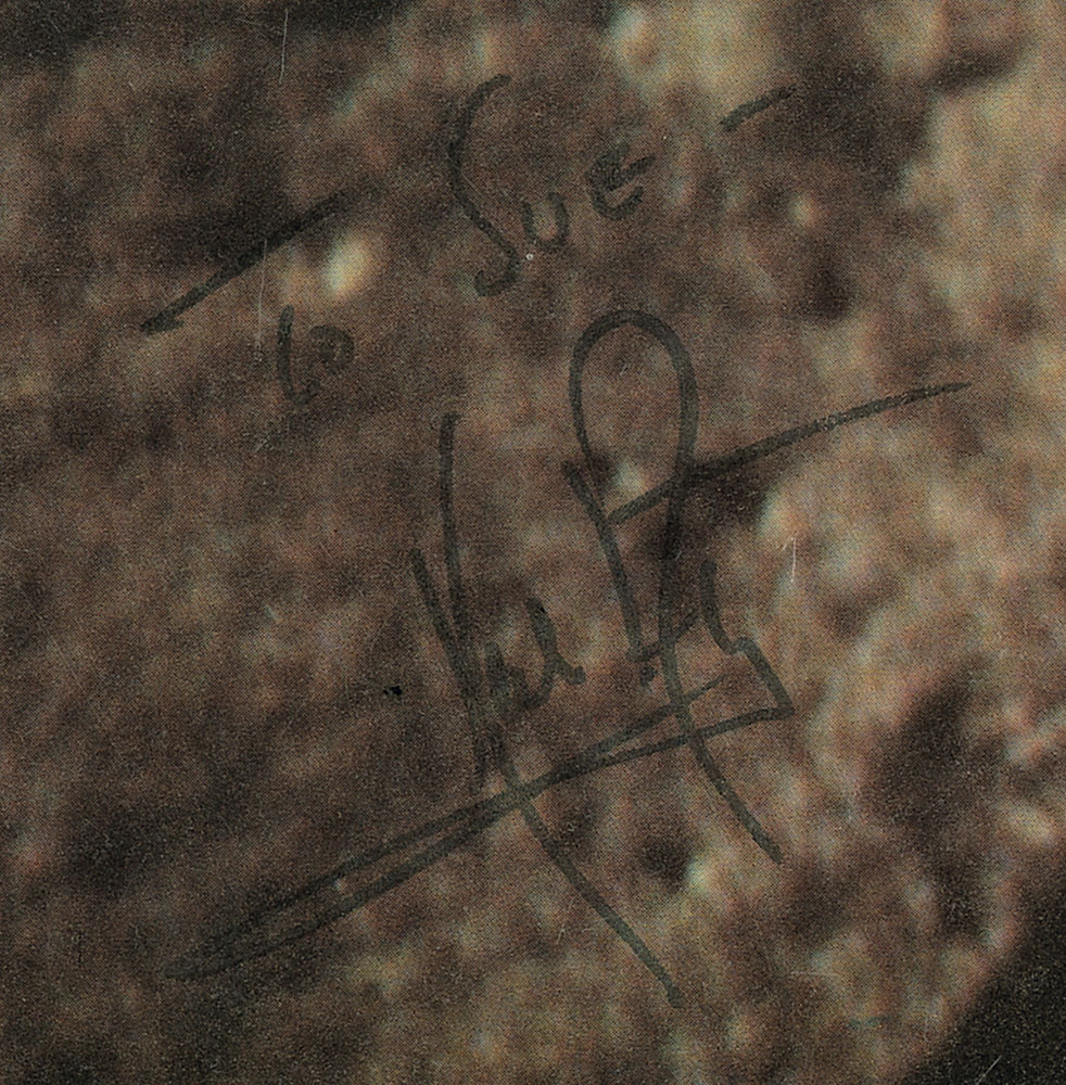 Color 21.75 x 16.75 NASA litho entitled ‘Armstrong & Aldrin Planting Old Glory on the Moon,’ numbered AP 1107, signed and inscribed in black felt tip, “To Sue, Neil Armstrong.” In fine condition, with light contrast to signature and inscription. Signed images of Armstrong on the moon are rather uncommon and highly-prized by collectors. Pre-certified Steve Zarelli and RR Auction COA.