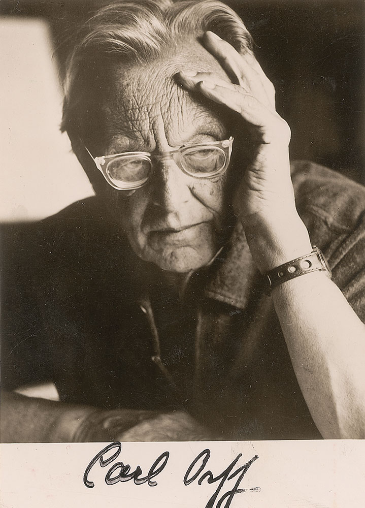 German composer (1895–1982) best known for his oratorio ‘Carmina Burana.’ Glossy 4 x 5.75 postcard photo, signed in the lower border in black felt tip. In fine condition, with a bit of light rubbing to finish and a postal impression to top right. RR Auction COA.