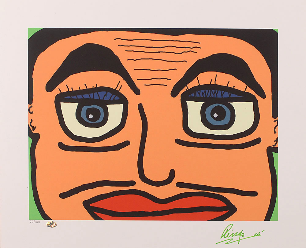 Color limited edition 21 x 17 print entitled ‘New Too OK,’ numbered 25/100, signed in the lower border in green felt tip, “Ringo ’05.” In fine condition. An uncommon example from Ringo’s first release of artwork in 2005. Pre-certified Roger Epperson/REAL and RR Auction COA.