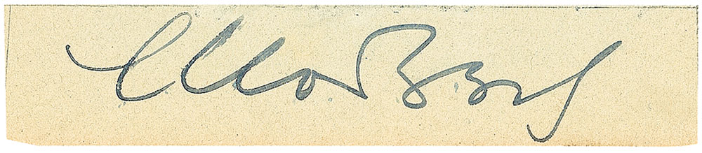 Baseball catcher (1902–1972) who also served briefly as a spy for the United States. Casey Stengel once described Berg as ‘the strangest man ever to play baseball.’ Bold and uncommon vintage fountain pen signature, “Moe Berg,” on an off-white 3.75 x .75 clipped slip affixed to a 5 x 3 album page. In fine condition. Pre-certified Steve Grad/PSA/DNA and RR Auction COA.