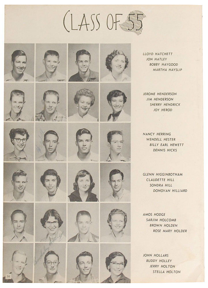 Lubbock Westerner yearbook from 1954, signed by Holly with the scarce form of his last name