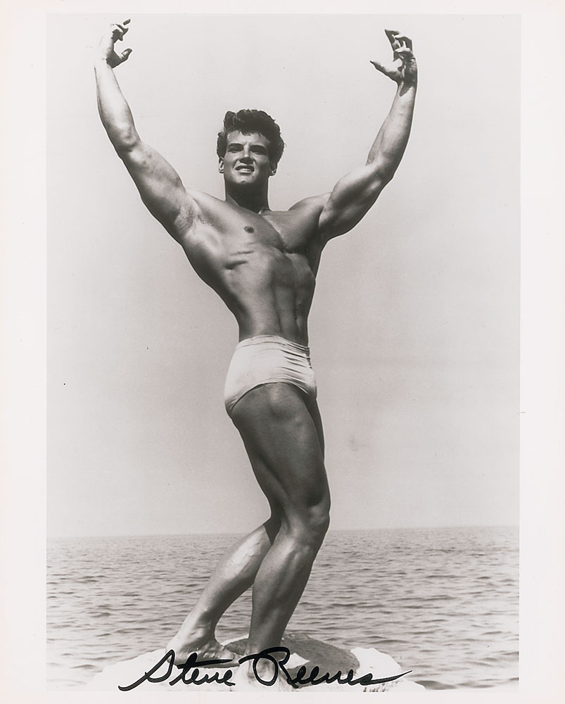 Majestic glossy 8 x 10 photo of Reeves posing atop a rock at the seashore, signed in black felt tip. In very fine condition. Pre-certified PSA/DNA and RR Auction COA.