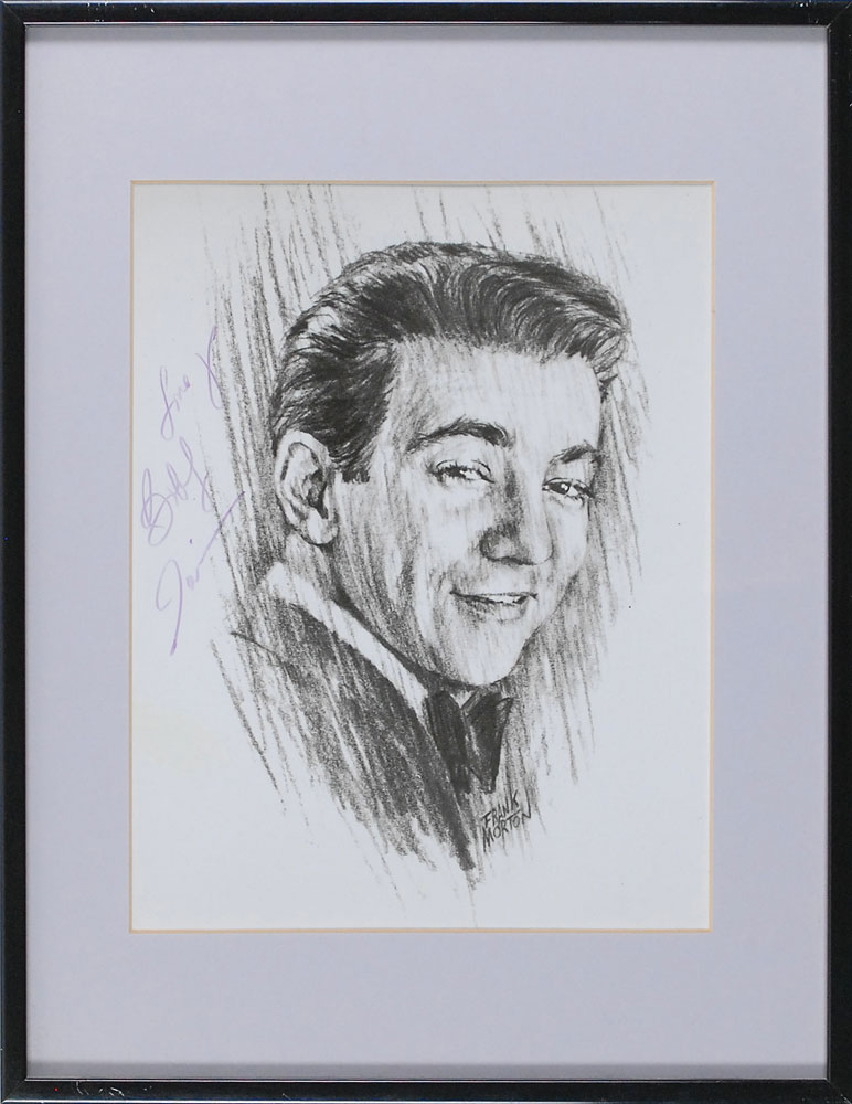 Vintage glossy 7 x 9 photo of a sketch of Darin done by Frank Morton, signed in purple felt tip, “Love ya, Bobby Darin.” Matted and framed to an overall size of 10.25 x 13. In fine condition. Pre-certified Roger Epperson/REAL and RR Auction COA.