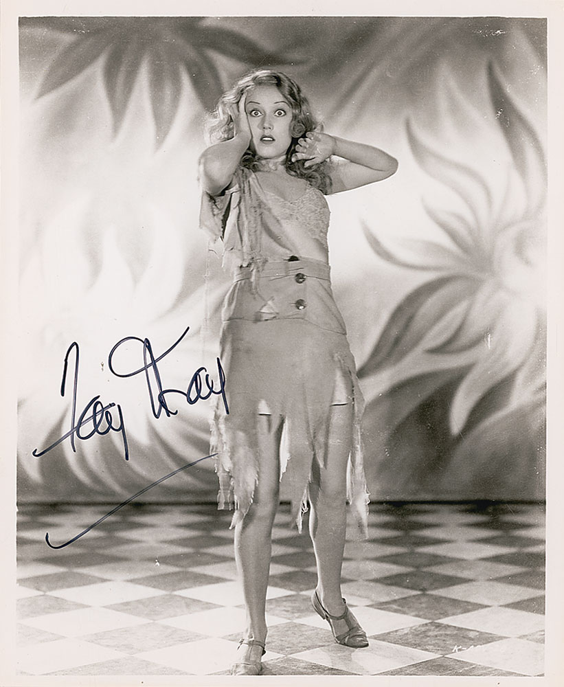 Glossy 8 x 10 photo of Wray as King Kong’s Ann Darrow in tattered clothing, cowering from an unseen danger, signed in black felt tip. In fine condition. Pre-certified PSA/DNA and RR Auction COA.