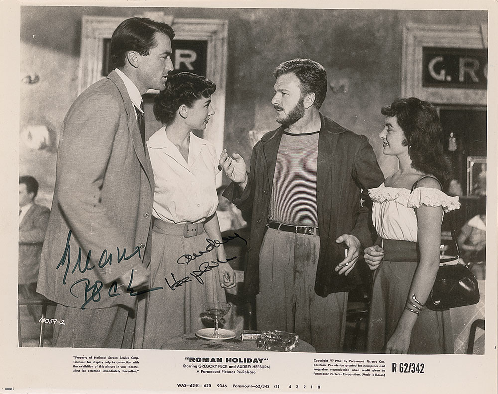Audrey Hepburn and Gregory Peck: Roman Holiday portrait signed by Peck and Hepburn, the film’s Academy Award-winning breakout star