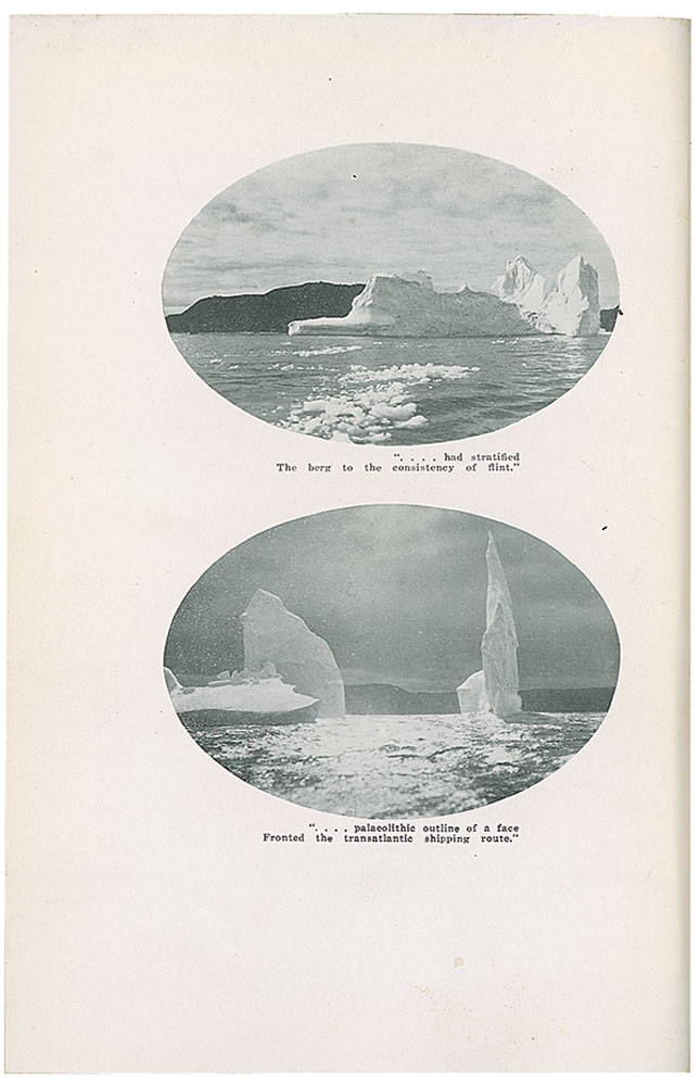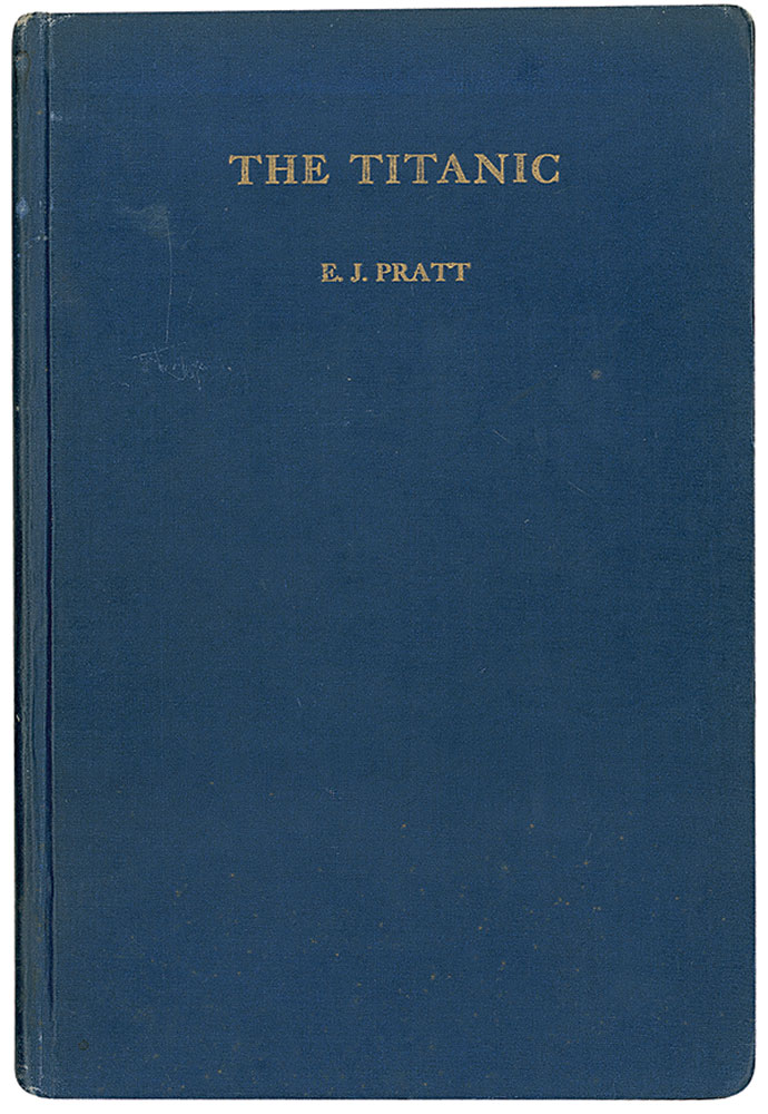 The Titanic by E. J. Pratt. First edition. Toronto: The Macmillan Company of Canada Limited, 1935. Hardcover, 6.5 x 9.5, 42 pages. An epic poem about the life and death of the Titanic, which also features two photos of icebergs. In fine condition, with scattered marks and dings to the covers and spine, and trivial toning and soiling to a few pages.
