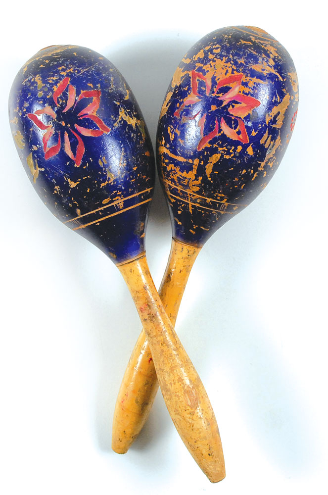 A pair of maracas personally-owned and -used on stage by Clark during his time with the Byrds in 1965-66. Deep purple-colored maracas measure 11″ long, with a painted floral design to both. Accompanied by a 1999 letter of authenticity from Jimmi Seiter, a member of the band’s management, which reads: “Based upon my long-term association with and knowledge of The Byrds, I hereby certify that this pair of deep purple maracas was owned and used on stage by Gene Clark…This item…has been in my personal possession since the period of usage.” In fine condition, with scattered areas of paint loss to both maracas and wear to both handles. RR Auction COA.