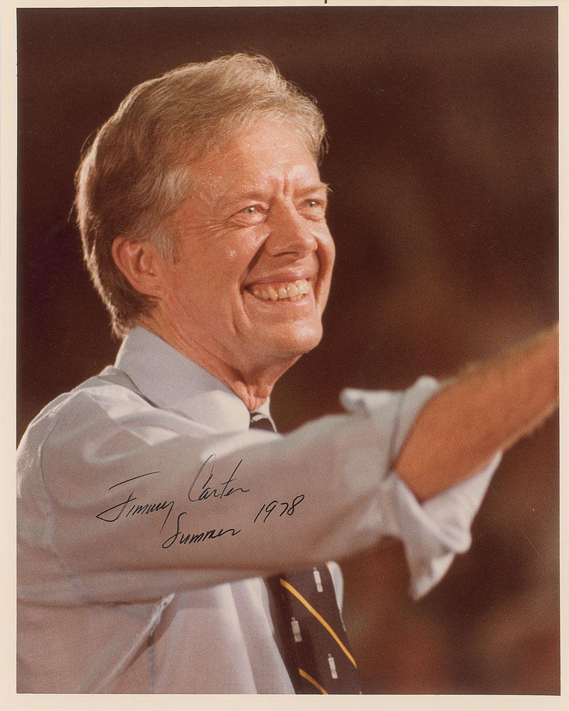 Official White House color satin-finish 8 x 10 photo, boldly signed in black felt tip, as president, “Jimmy Carter, Summer 1978.” In very fine condition. A thoughtful and very uncommon notation by the incumbent president.