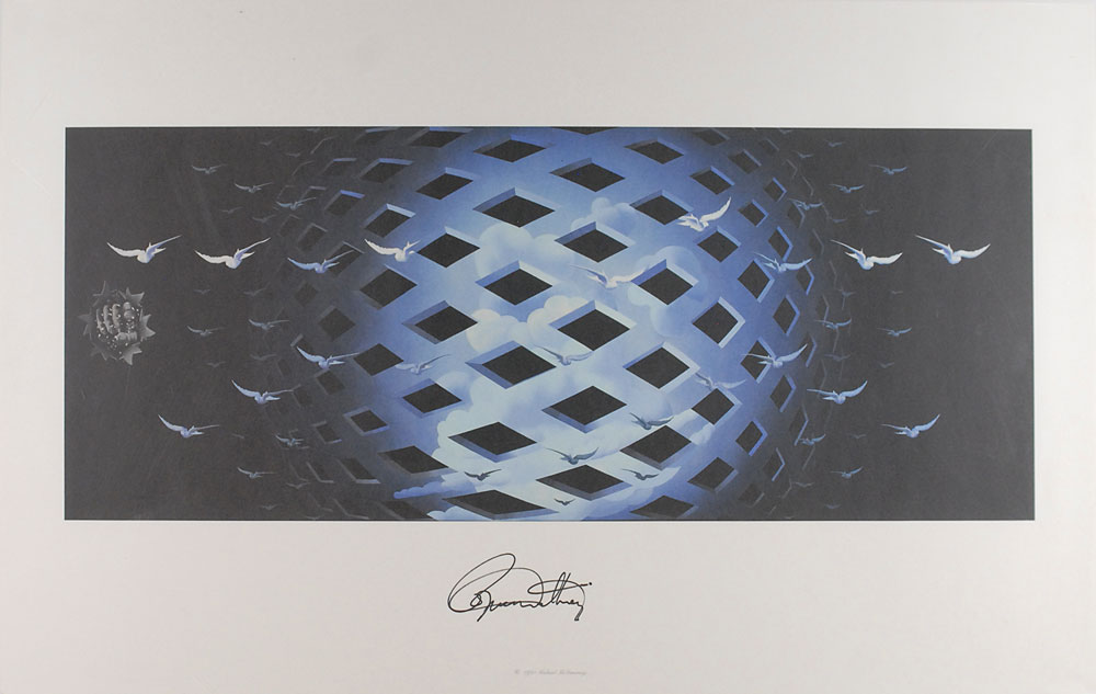 Color limited edition 32 x 24 poster of the artwork for the cover of The Who’s Tommy album, 565/750, signed in the lower border in black felt tip. Rolled and in fine condition. Pre-certified Roger Epperson/REAL and RR Auction COA.
