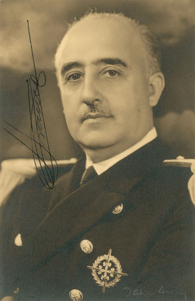 Matte-finish 3.25 x 5.25 real photo postcard of Franco in uniform, signed in fountain pen. Also faintly signed in the lower right by the photographer. In fine condition. RR Auction COA.