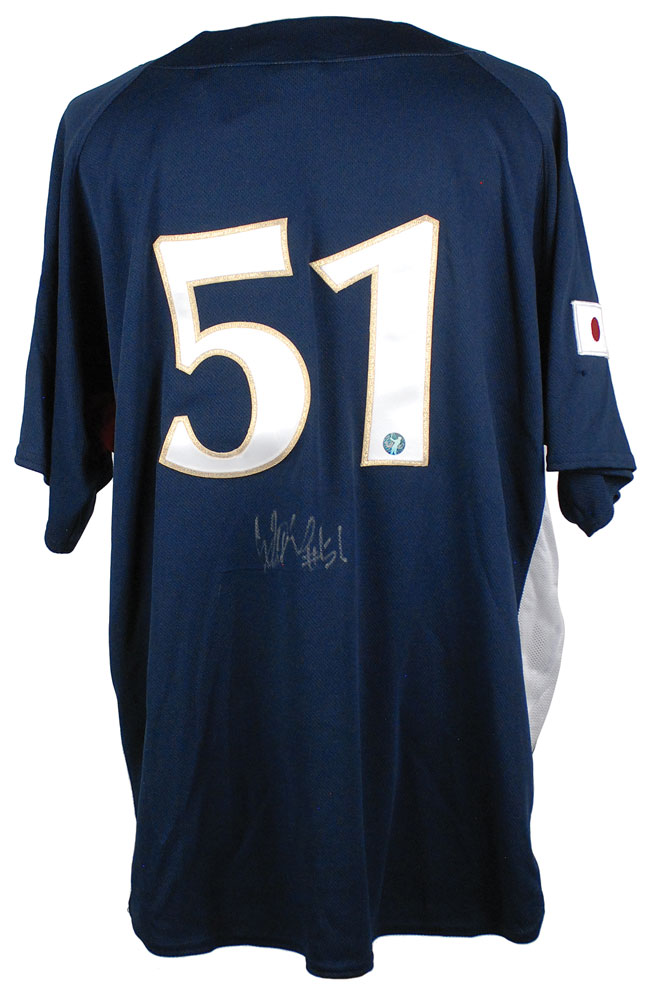 Collection of eight items, each signed by a different player. Signers are: Ichiro Suzuki (official Majestic replica Japan World Baseball Classic jersey in its original box), Stan Musial (SP), Buck Leonard (SP), Hideki Matsui (SP), Steve Carlton (baseball cap), Rick Ferrell (signature and inscription), and George Sisler (2 signatures). In overall fine condition. RR Auction COA.