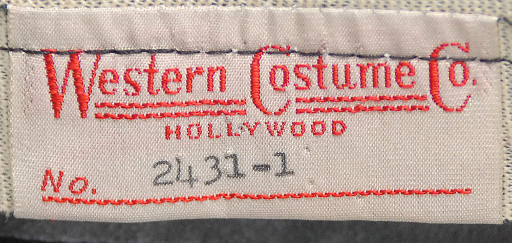 Original gorilla guard uniform made for the production of the 1970 film Beneath the Planet of the Apes. Uniform consists of purple drawstring pants, a matching long sleeve button-up shirt, a striped leather vest with front Velcro closure (with a Western Costume Company label sewn to the inside), and two matching leather and cloth green and purple gloves. In fine condition, with expected light wear. RR Auction COA.
