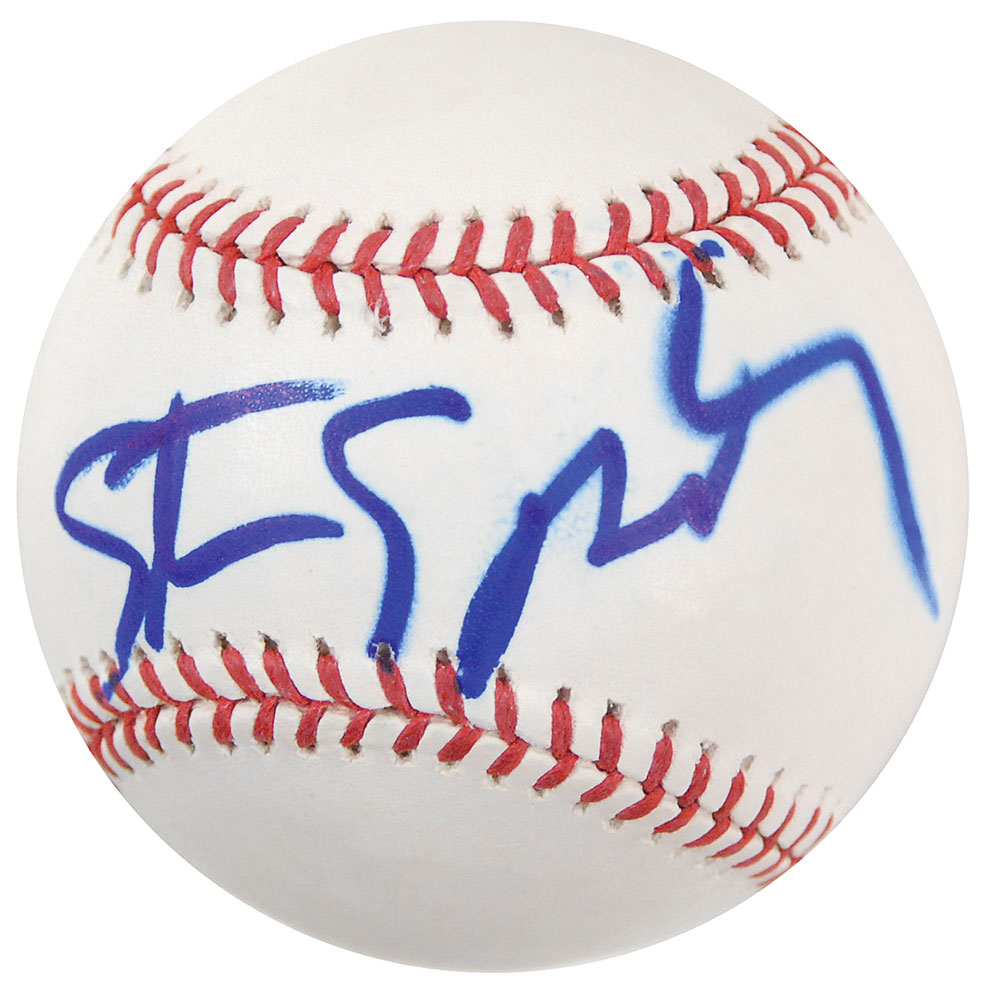 Official Rawlings Major League Baseball signed on the sweet spot in blue felt tip; and a Raiders of the Lost Ark laserdisc, signed on the front cover in blue felt tip. In overall fine condition, with slight feathering to the ink on the baseball. Accompanied by a certificate of authenticity from PSA/DNA for the laserdisc. The disc is included. RR Auction COA.