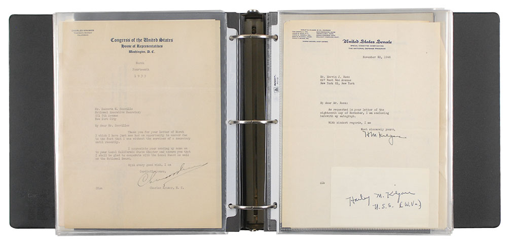 Collection of over 125 items comprised of signed photos, letters, cards, and programs, each signed by politician, including: Carl Albert, John Dingell, Tom Eagleton, James Eastland, William Fulbright, Phil Gramm, Tom Harkin, Jesse Helms, Jacob Javits, Ed Koch, Mike Mansfiero, Eugene McCarthy, John McCormick, Wilber Mills, Tip O’Neill, Claude Pepper, Adam Clayton Powell, Charles Rangel, Peter Rodino, William Borah, and Shirley Chisholm. In overall very good to fine condition. The volume of items precludes a complete list, and interested parties are advised to view the collection in person at our offices, as this collection is sold as is, and no returns will be accepted. RR Auction COA.