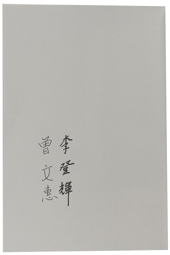 Politician (born 1923) sometimes called the ‘father of Taiwan's democracy’ who served as president of the Republic of China [Taiwan] from 1988 to 2000. Signed book: A Witness for God: Lee Teng-hui’s Confession of Faith. Taiwan: Yuan-Liou Publishing Co. Ltd., 2013. Softcover, 5.75 x 8.25, 322 pages. Signed on the first free end page in black ink by Lee Teng-hui and his wife, Tseng Wen-hui. In fine condition. Pre-certified PSA/DNA.