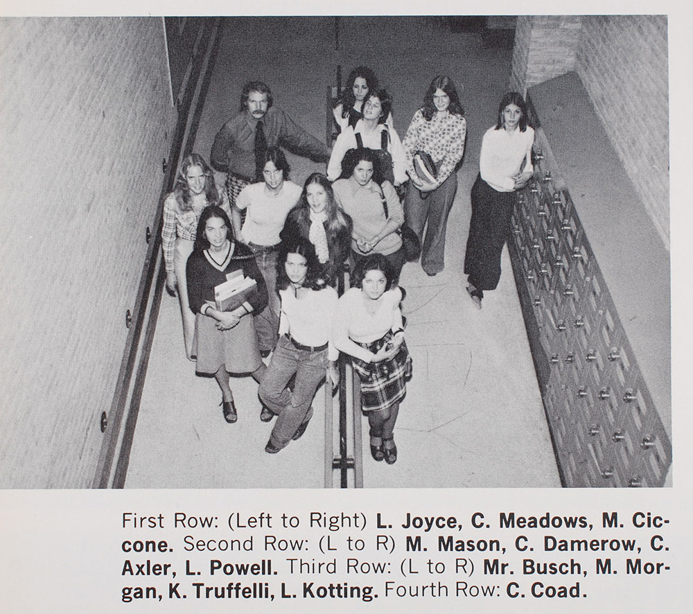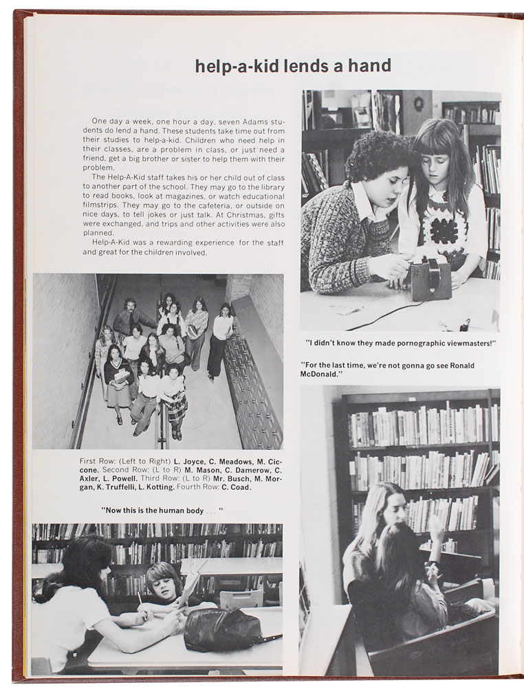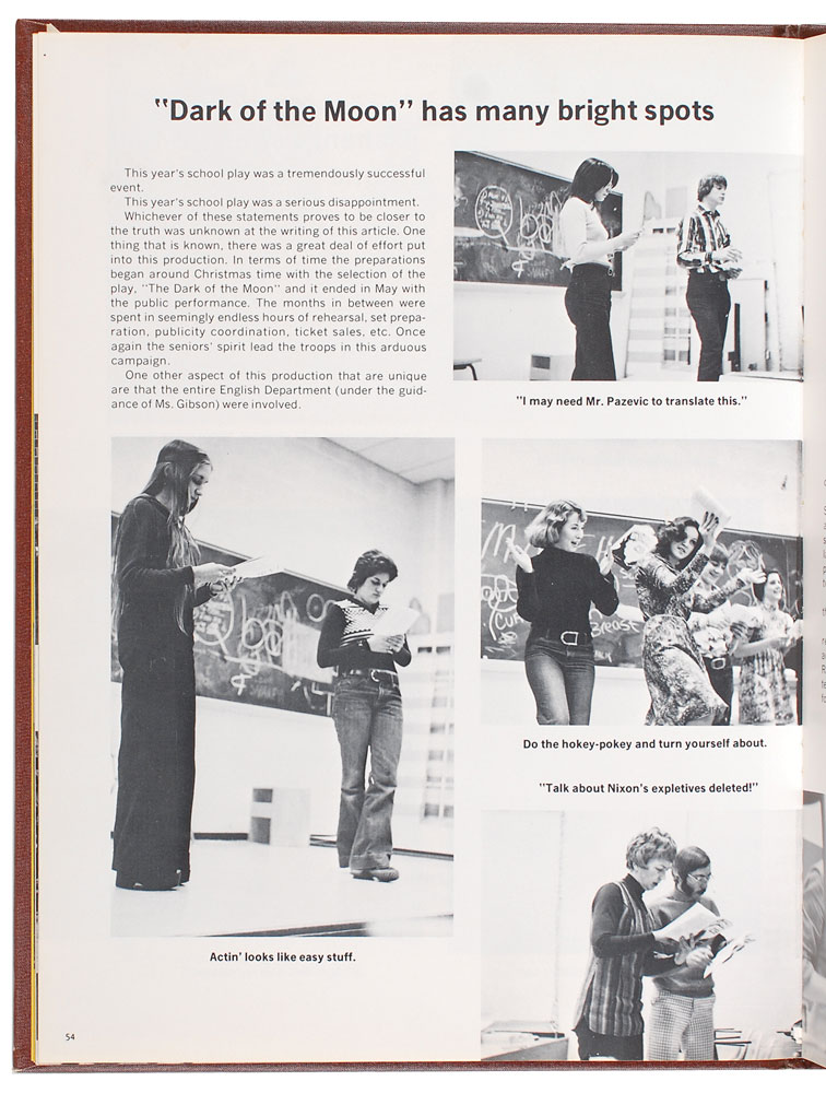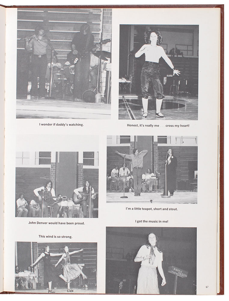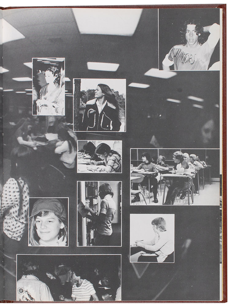Rochester Adams High School of Richmond, Michigan 1975 The Highlander yearbook, 9.25 x 12.25, 207 pages, depicting Madonna as Madonna Ciccone on pages 67 and 100, and on page 155 as a member of the junior class. In fine condition, with slight wear to covers, edges, and centerfold binding.