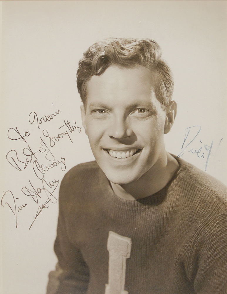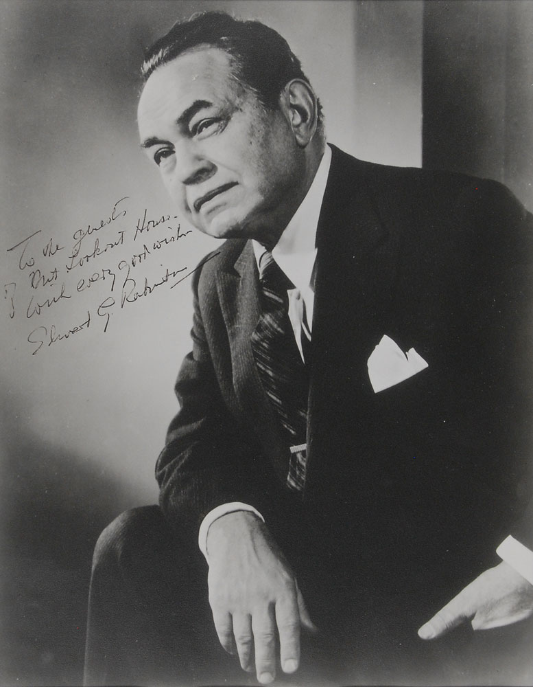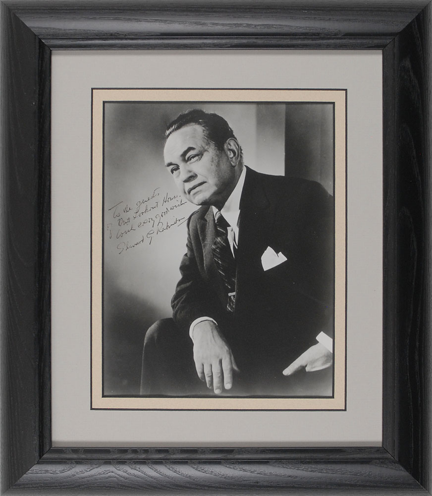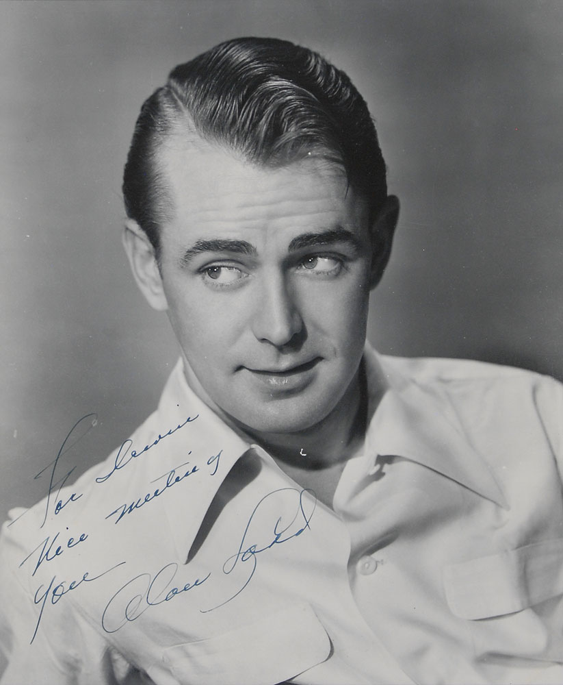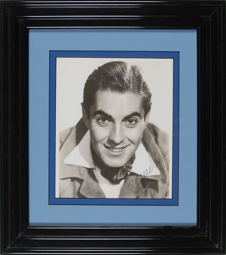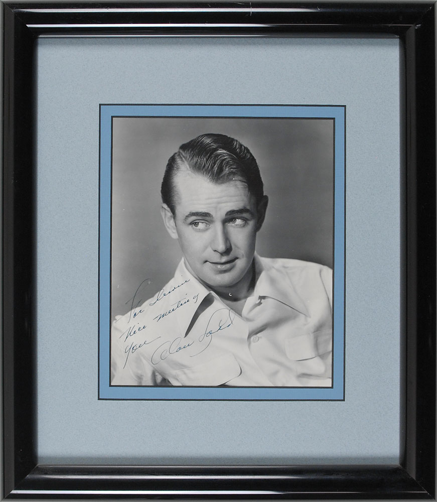 Collection of four vintage glossy and matte-finish 8 x 10 photographs, each signed in various inks, including: Edgar Robinson (ins.), Tyrone Power, Alan Ladd (ins.), and Dick Haymes (ins.). Photos are all matted and framed, ranging in size from 12.5 x 14.5 to 14.25 x 16. In overall fine condition. The James Collings Collection; ex. Irwin Oster. Pre-certified PSA/DNA.