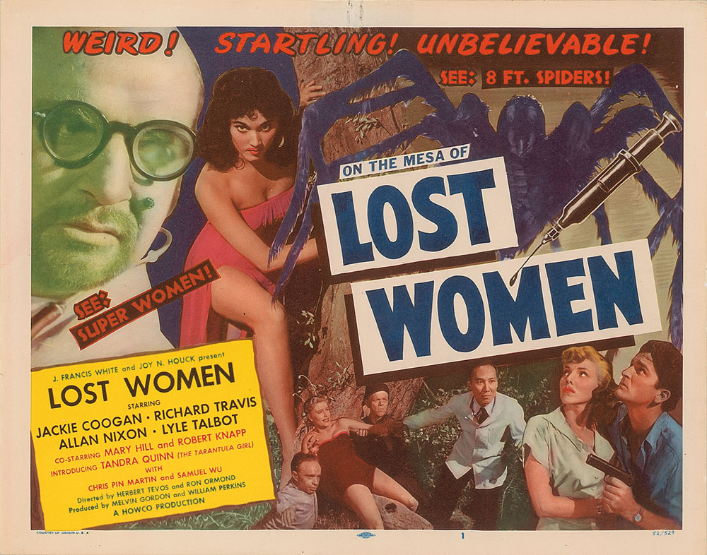 Three lobby cards for films by Wood or featuring his key actors, 14 x 11, including: Bride of the Monster (1956), The Bride and the Beast (1958), and On the Mesa of Lost Women (1952). A small tear to the top of the Lost Women card repaired with tape on the reverse, otherwise overall fine condition. The James Collings Collection.