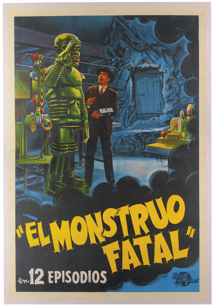 The Phantom Creeps/El Monstruo Fatal (Universal International). Spanish one sheet (31 x 45). Science-fiction movie serial in 12 episodes starring Bela Lugosi as the villainous Doctor Zorka in a story about a mad scientist who attempts to rule the world by creating elaborate inventions. Linen-backed and professionally restored to fine condition. The James Collings Collection.