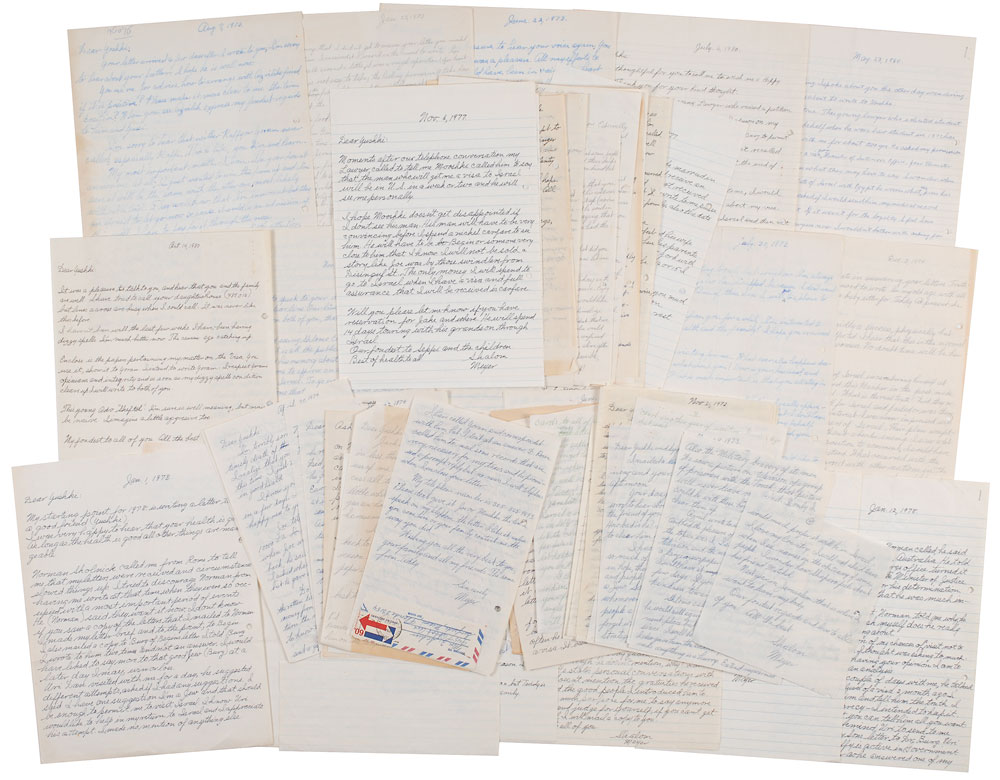 Amazing archive of 47 ALSs signed "Meyer," totaling 82 pages, dated between 1972 and 1981. All are to Joseph Sheiner, a member of the Israeli Security Agency who had accompanied Lansky on his infamous flight from Israel to seek asylum elsewhere rather than face charges in the US. Lansky's letters to his Israeli confidante, who he addresses by his Hebrew first name, Yoskeh, span the final chapter of the mobster's storied career—from his return to Miami in November 1972 to a year before his death in 1982. The letters reveal not only a cagey businessman who displayed keen insight into people's strengths and weaknesses, unafraid to angrily lash out at those who would cross him, but also a man with deep compassion and love for his family, friends, and the State of Israel.