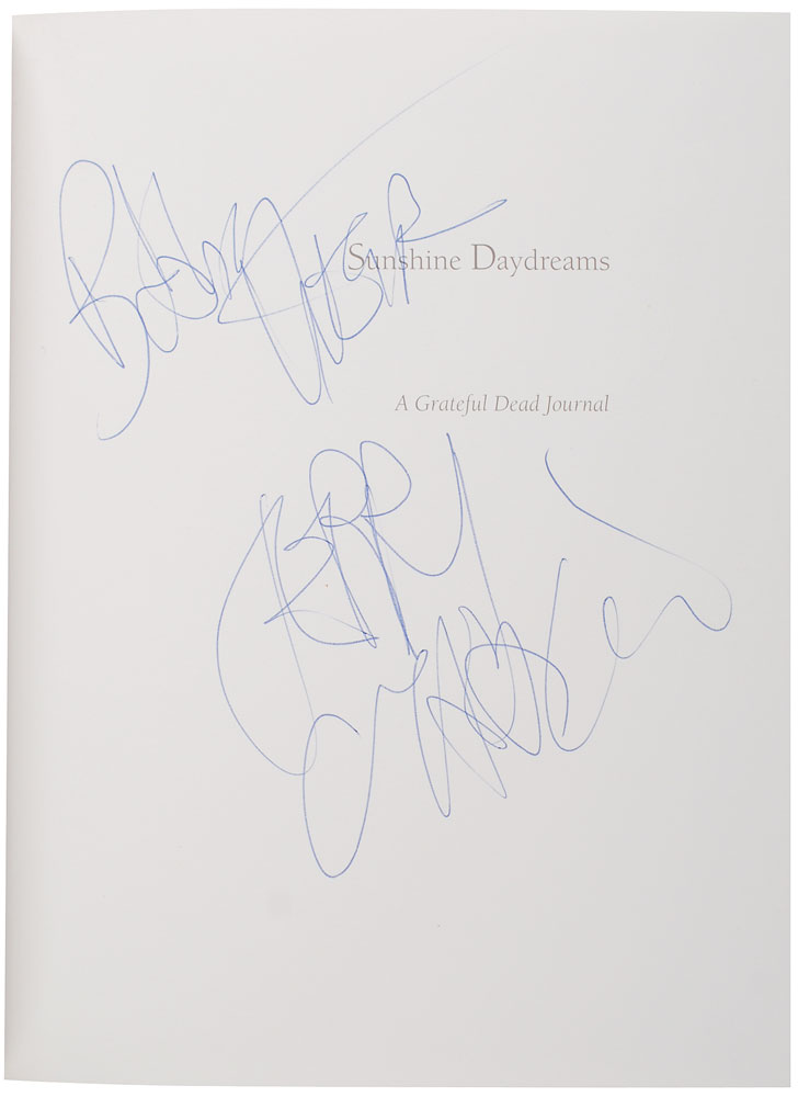 Signed book: Sunshine Daydreams. First edition. San Francisco: Chronicle Books, 1991. Hardcover, 7.5 x 9.25, 120 pages. Signed on the half title page in blue ballpoint by Bob Weir and Jerry Garcia. In fine condition. Accompanied by a full letter of authenticity from REAL. Learn more about the 50th anniversary of the Grateful Dead.