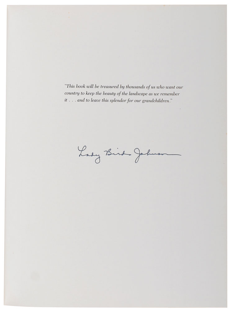 Three items: a hardcover first edition of The Vantage Point, signed on the first free end page in fountain pen; a hardcover first edition of Texas in Bloom, signed on a prefatory page in black felt tip by Lady Bird Johnson; and an unsigned 1966 bronze-colored bust by Jimilu Mason measuring 9″ tall. In overall fine condition, with toning and a couple small edge chips to the dust jacket of The Vantage Point. Pre-certified PSA/DNA.