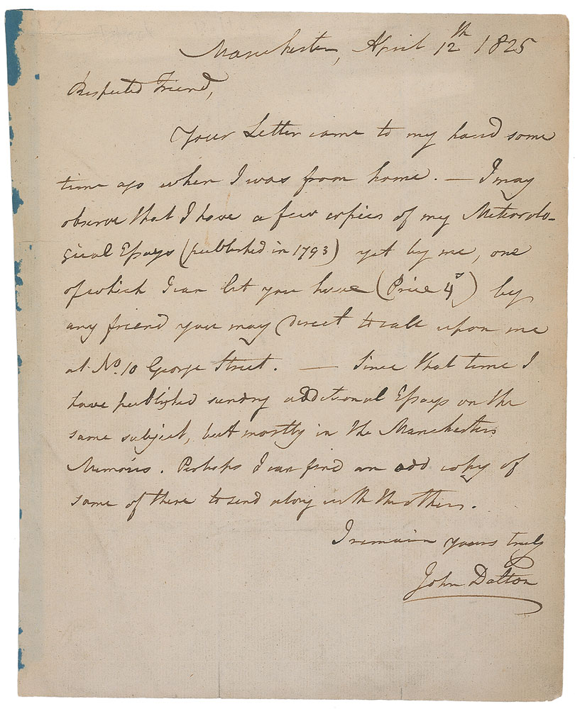 John Dalton: “I have a few copies of my Meteorological Essays (published in 1793)”