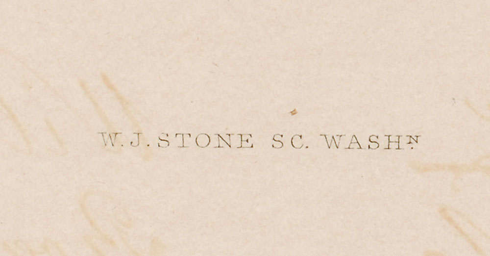 Twenty years later, in 1843, Peter Force was commissioned by Congress to print a series of books—now known as the American Archives—featuring the founding documents of the United States. For the occasion, the Stone engraving was removed from storage and used to produce new copies on rice paper, distinguished from the original by an engraving in the lower left corner “W.J. Stone S.C. Washn.” Printed in 1848, each copy was folded into the first volume of the fifth series of books. After printing, the plate was again retired, now residing with the original Declaration at the National Archives. Congress authorized the printing of 1500 copies of American Archives, but subscriptions for the elaborate edition were disappointing, and in the end many fewer copies—perhaps only 500—were issued. Most, including this copy, were folded and bound into Volume I, Series Five. A magnificent example in its seldom-seen original state.