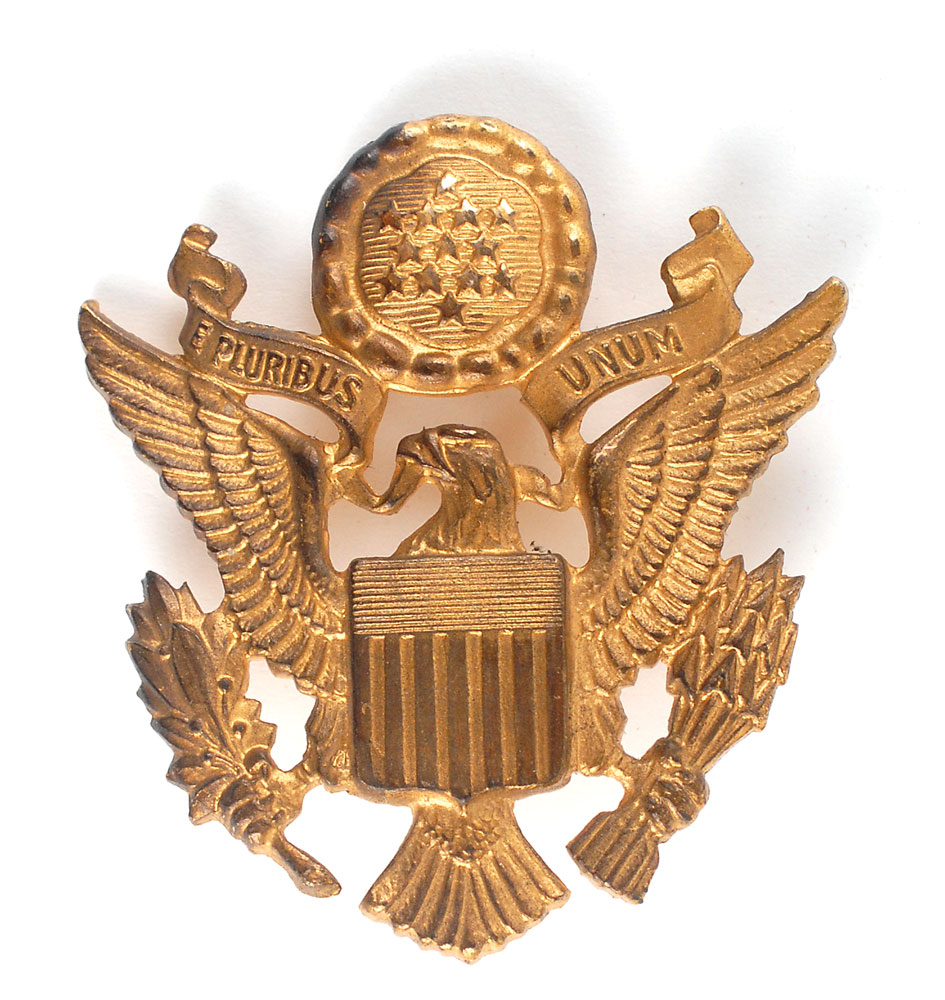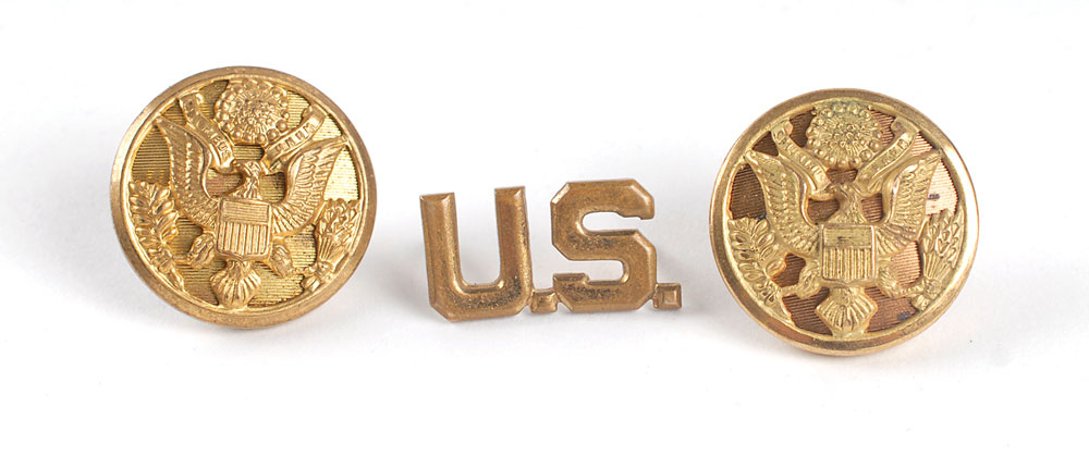 TLS signed “GSP, Jr.,” one page, 8.25 x 10.5, Headquarters, Third United States Army, Office of the Commanding General letterhead, September 16, 1945. Letter to Lieutenant General Geoffrey Keyes, in full: “Young Count Rudolph Czernein, who is connected by marriage with the Grand Duchese of Luxembourg who has been very helpful to the Americans, is anxious to attend college in Heidelberg. Could you please have somebody inform me whether or not it is possible for him to do so and what papers, if any, he needs from here? He lives with his mother on an estate in the vicinity of Munich.” In fine condition, with stray ink to lower left corner, faint area of dampstaining to right edge, and a pair of punch holes to top. Accompanied by the following insignia owned by General Keyes: a 2.25 x 2.5 metallic seal of the United States, a US metallic collar insignia, two metal buttons depicting the seal of the United States, a light brown 4 x 1.25 swatch bearing two woven “U.S.” gold patterns, and a dark brown 1.75 x 1.75 swatch bearing a woven star.
