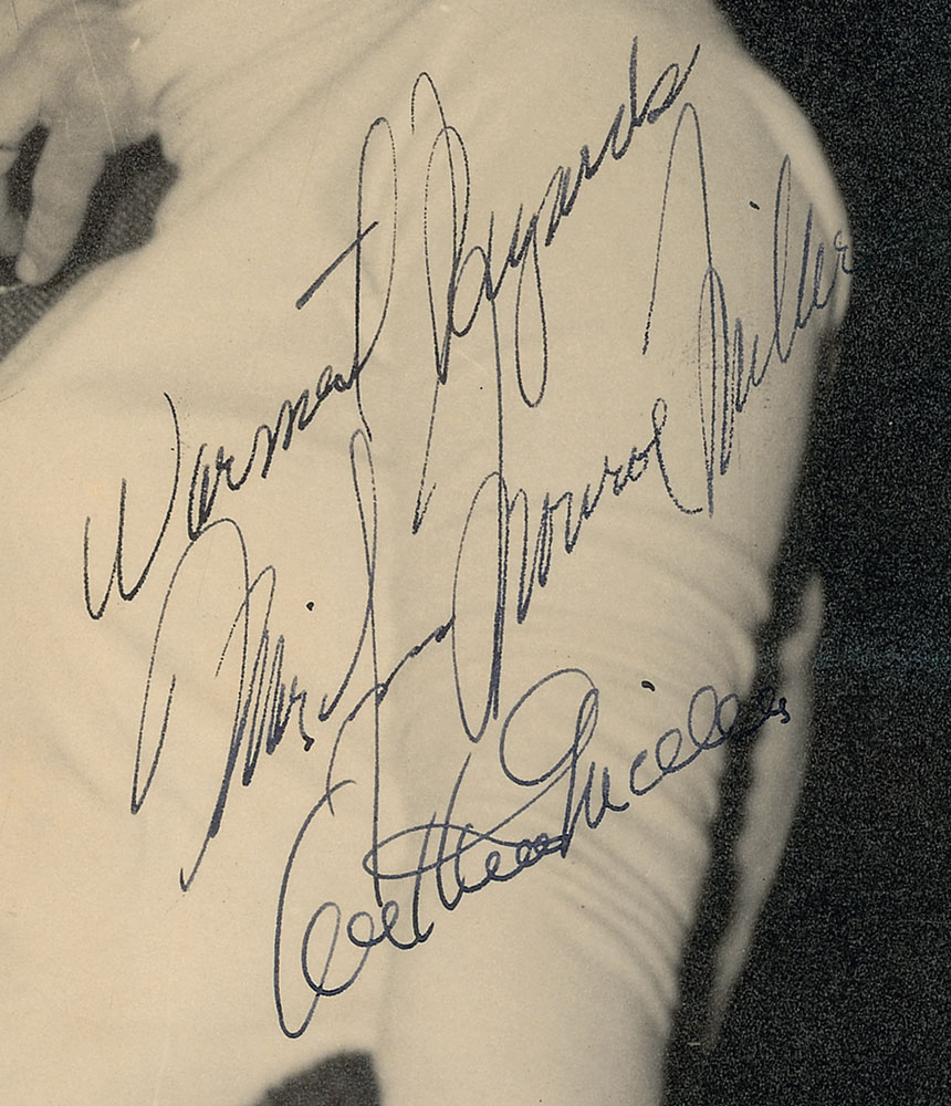 Six months after marrying at the Westchester County Court House in White Plains, New York, Monroe and Miller celebrated their honeymoon by flying to the Caribbean on January 3, 1957. Before returning to the states two weeks later, the couple spent several days at Moon Point, Jamaica, living it up at the luxurious villa of English aristocrat Lady Pamela Bird. This dual-signed photo serves as a rare passing glimpse of the couple at their most ebullient, and a bittersweet departure from a relationship that would grow increasingly tumultuous, culminating with Monroe’s final completed film—the Miller-penned Misfits. Pre-certified PSA/DNA.