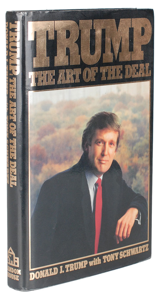 Signed book: The Art of the Deal. Later printing. NY: Random House, 1987. Hardcover with dust jacket, 6.5 x 9.5, 246 pages. Prominently signed on the title page in thick blue felt tip. In fine condition. Pre-certified PSA/DNA.