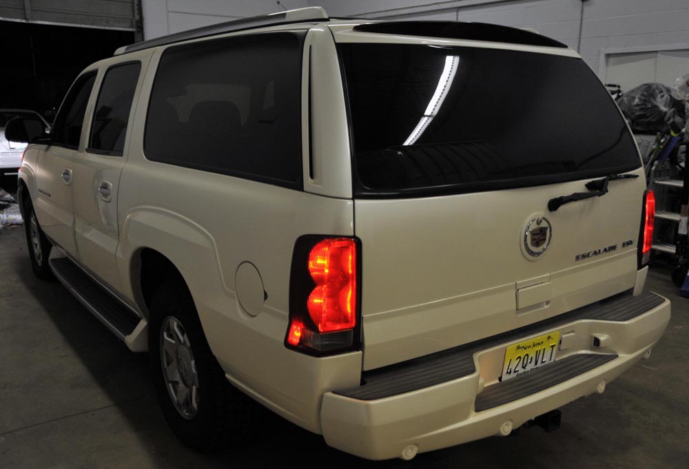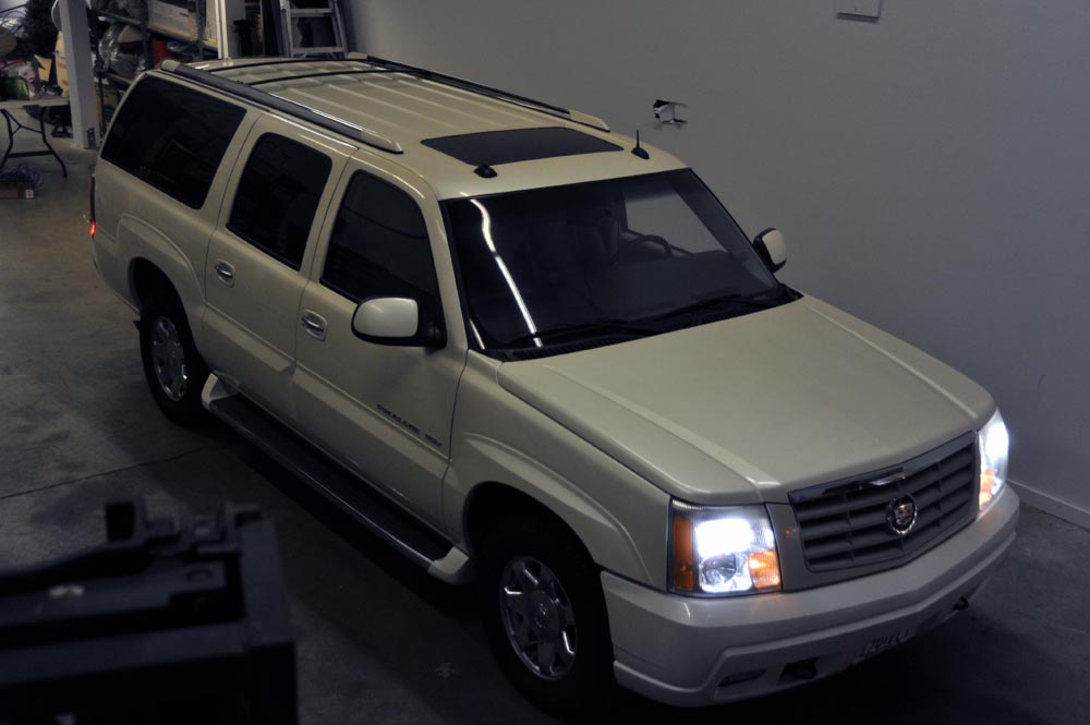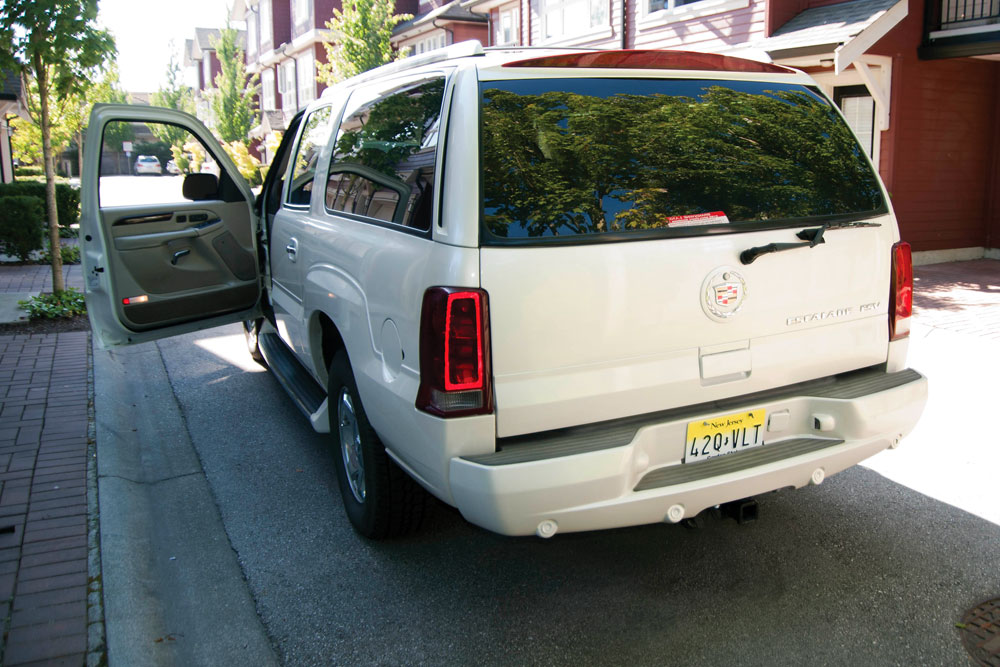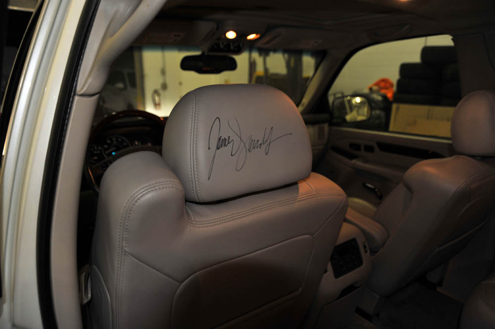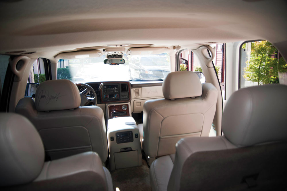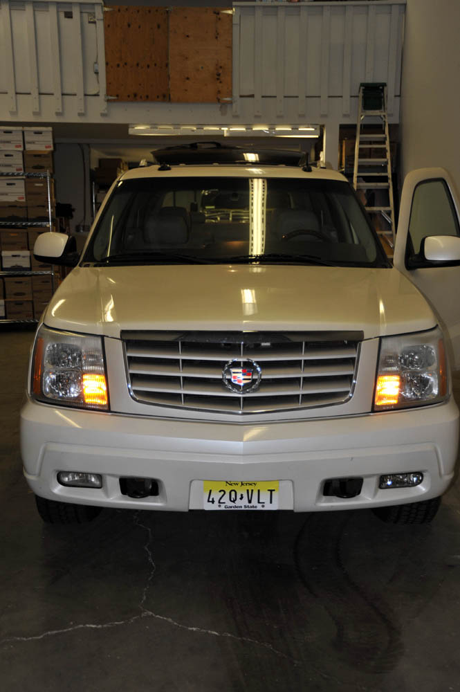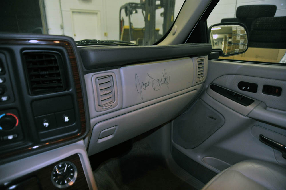Extraordinary white 2003 Cadillac Escalade ESV used on screen by James Gandolfini in his iconic role as Tony Soprano during the last three seasons of the award-winning HBO series The Sopranos. This Escalade was originally leased through Movie Time Cars Incorporated as one of two identical vehicles used in production, with this specific car used primarily for exterior shots including those showing Tony Soprano and his associates entering, exiting, and driving, as well as in shots where the car appeared in the scene during dialogue. This Escalade represented Tony’s personal car and primary means of transportation, frequently used to show him going to and from his own driveway, meetings with members of the New York families, and the notorious landmarks of the Sopranos’ fictional universe like the Bada Bing strip club and Satriale's Pork Store. This vehicle was also utilized in action sequences including the infamous chase from season five in which Tony, angrily trying to collect a debt, drives Phil Leotardo off the road and into a parked car. James Gandolfini has also prominently signed the interior of the Escalade three times in black felt tip, once inside the driver’s side sun visor, “Thanks for the truck, James Gandolfini,” once on the panel above the glovebox, “James Gandolfini,” and lastly on the back of the driver’s seat headrest “James Gandolfini.” A decidedly unique, recognizable prop from one of the most acclaimed television series ever produced.