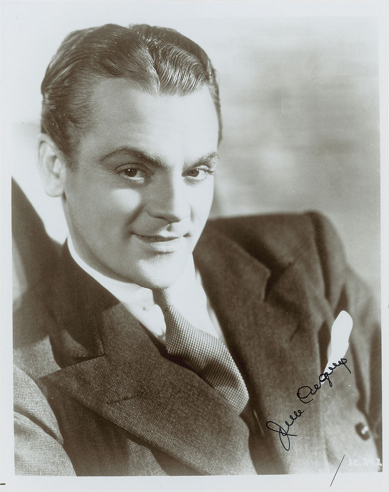 Handsome glossy 8 x 9.75 photo of Cagney wearing a suit and tie, signed in black felt tip. In fine condition, with an evenly trimmed bottom edge. Pre-certified PSA/DNA.