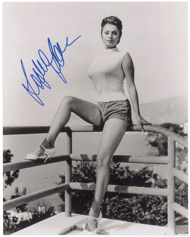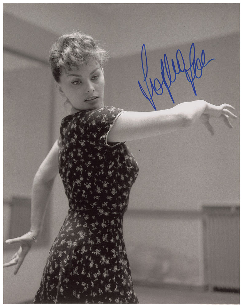 Attractive set of four glossy photos of Loren, all approximately 8 x 10.25, each signed in blue felt tip. In overall fine condition, with a slightly grainy quality to two of the images. Pre-certified PSA/DNA.