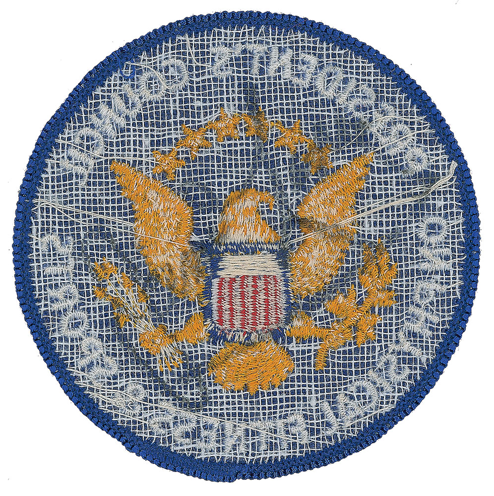 Flown embroidered President’s Council on Physical Fitness & Sports patch carried on the Apollo 13 mission, measuring 3″ in diameter, lightly signed on the reverse in black felt tip, “James Lovell.” In fine condition, with poor contrast to signature due to the color and texture of the embroidery material. Accompanied by a signed letter of authenticity from Lovell, in full: “The President’s Council on Physical Fitness & Sports patch was flown on board the Apollo 13 Command Module Odyssey during its flight around the moon April 11–17, 1970. It was stored in the Commander’s Personal Preference Kit. The patch would have remained in Odyssey had we landed on the moon.” Pre-certified Zarelli Space Authentication.