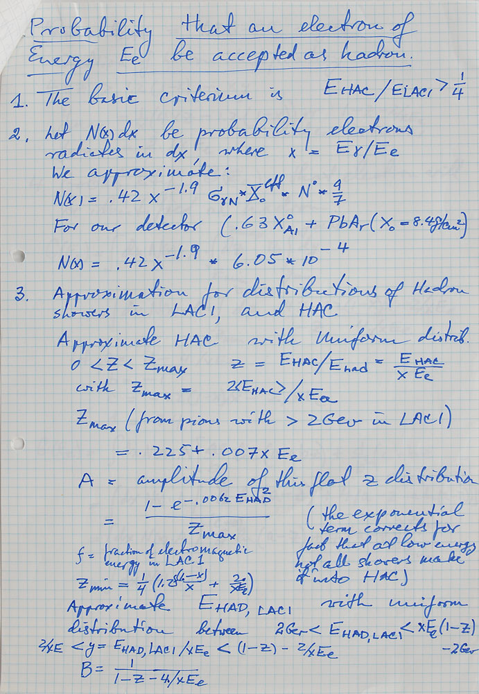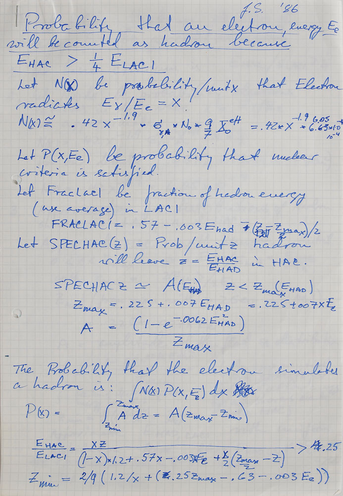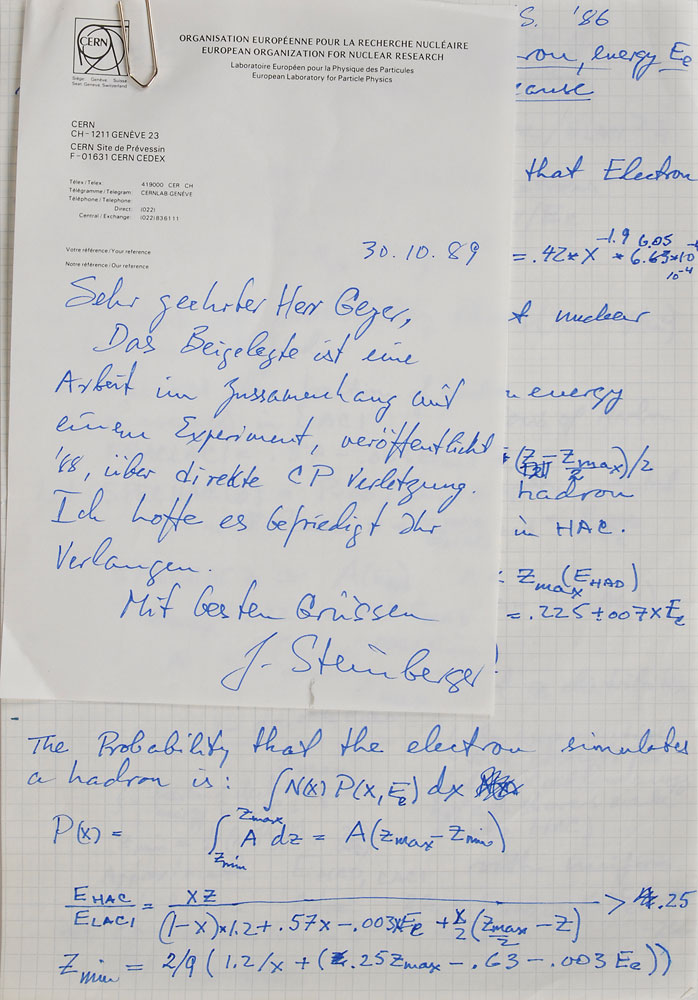 Physicist (born 1921) who co-discovered the muon neutrino and was awarded the 1988 Nobel Prize in Physics. Handwritten manuscript, initialed “J. S.,” three pages, 8.25 x 11.75, circa 1986. Complex scientific manuscript, headed, “Probability the an electron, energy Ee will be counted as a hadron.” Includes a 1989 ALS in German, signed “J. Steinberger.” In fine condition, with a small tear to the bottom edge of the letter. Pre-certified PSA/DNA.