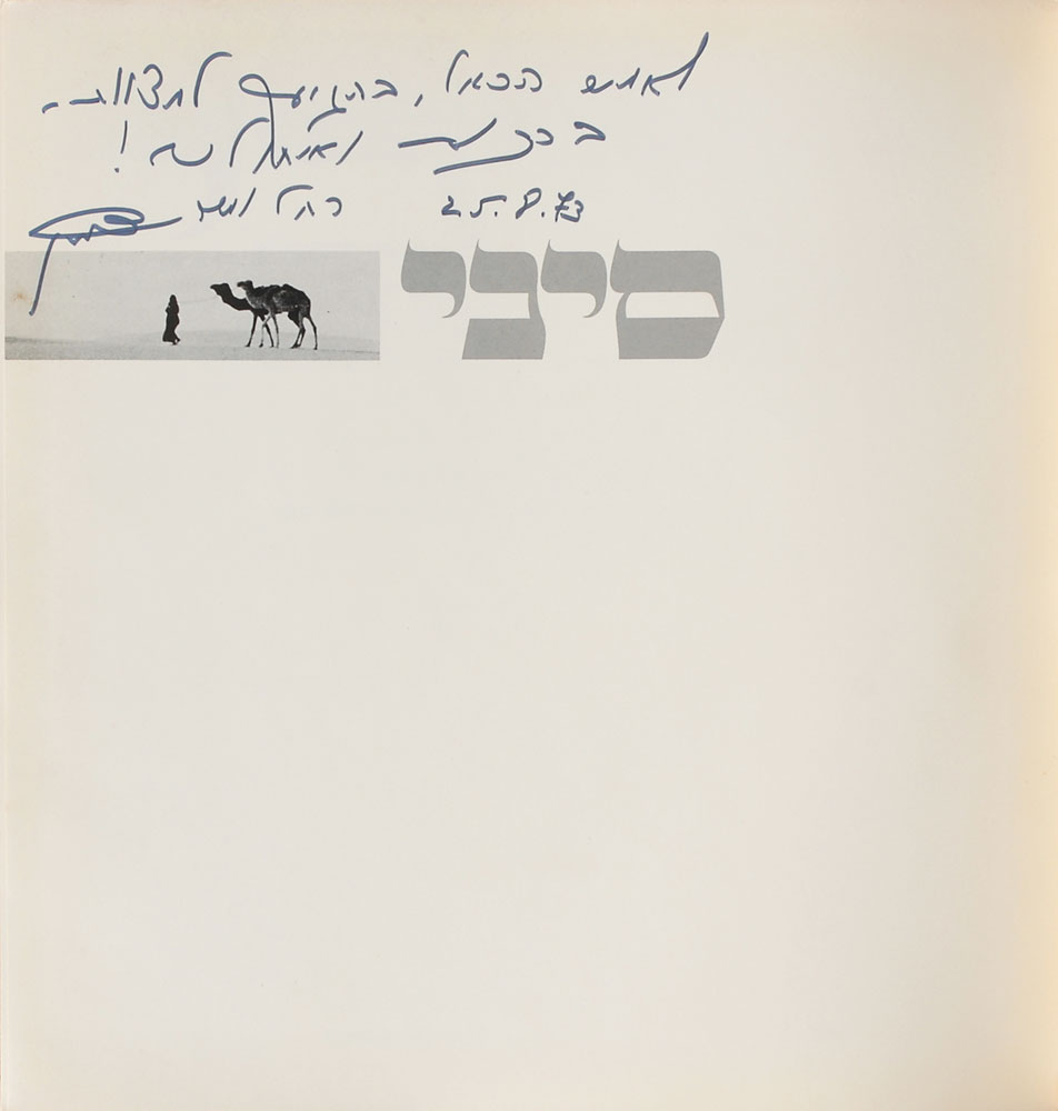 Signed book in Hebrew: Sinai. Tel Aviv: Shikmona Publishing Company, 1972. Hardcover, 11 x 11.25, 167 pages. Signed on the half-title page in Hebrew in black felt tip, adding the date, “25.8.73.” In fine condition. Pre-certified PSA/DNA.