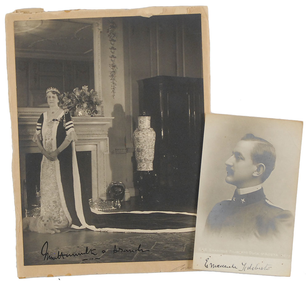 Collection of six items signed by world leaders and royalty, including: Prince Emanuele Filiberto (SP), Leon Gambetta (ANS), Robert C. Schenck (ALS and signature), C. H. Gibbs (SP), and Nina Hamilton (SP). In overall very good to fine condition.