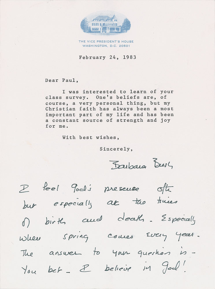 Barbara Bush: “I feel God’s presence often but especially at the times of birth and death.”