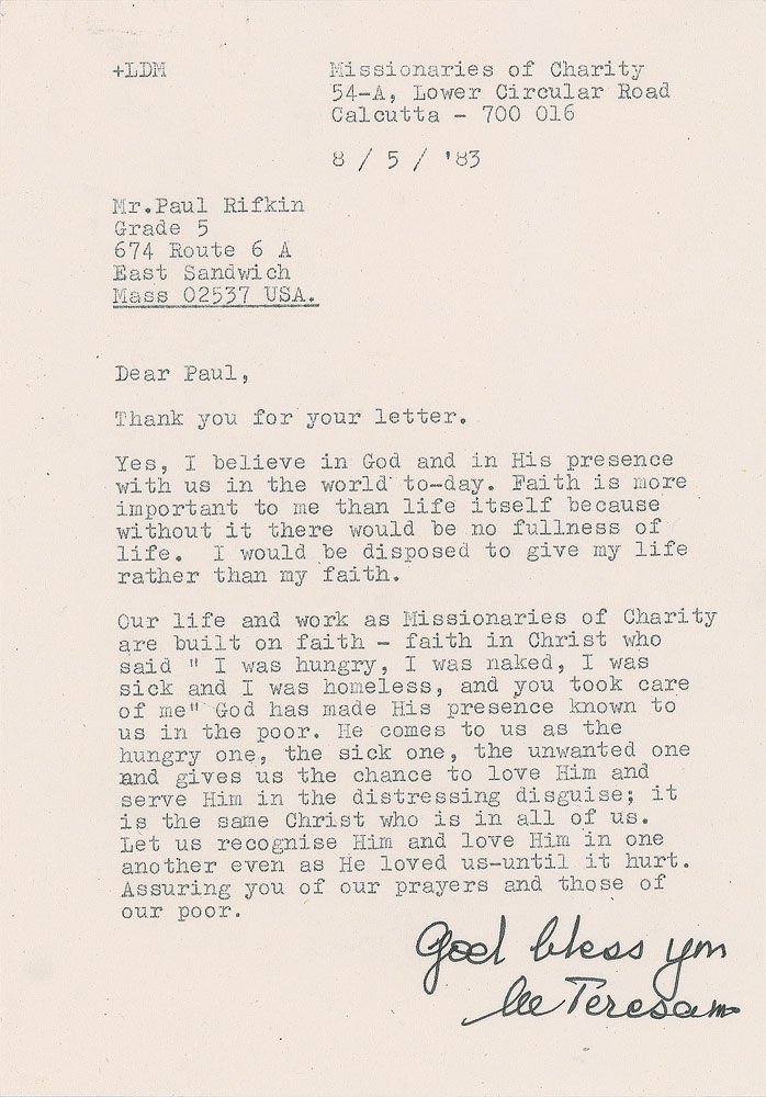 Mother Teresa: “Faith is more important to me than life itself because without it there would be no fullness of life.”