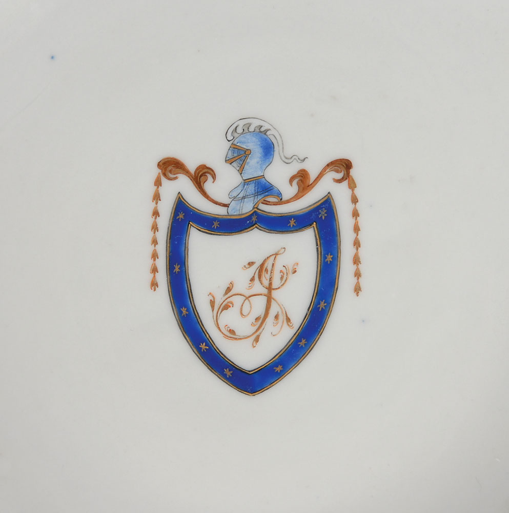 This particular gilt “J” dinner service has long been linked to Thomas Jefferson, including being published in Official White House China (mentioning early Chinese export) by M.B. Klapthor, with examples at one time on display at Monticello, the US State Department Diplomatic Reception Rooms, and the White House (before at least 1908). Jefferson's 19th century direct lineal descendants strongly believed in Jefferson's ownership of the 1790s "J" service, sought to re-acquire it, and then gifted four "J" pieces to the White House in the early 1900's—where each piece has remained for over 100 years. An incredibly rare opportunity to acquire such an attractive piece of US history, as most, if not all, of the other china from the first three presidents were destroyed when the British ransacked and burned the Executive Mansion during the War of 1812. The historical significance of such a rare piece of presidential porcelain from a well-known collection, in such truly superb condition, is not to be understated. The Raleigh DeGeer Amyx Collection.