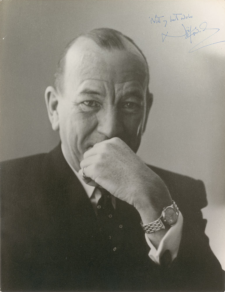 Appealing matte-finish 8.75 x 11.5 photo of Coward, signed in blue ballpoint, “With my best wishes, Noel Coward.” In fine condition. Pre-certified PSA/DNA.