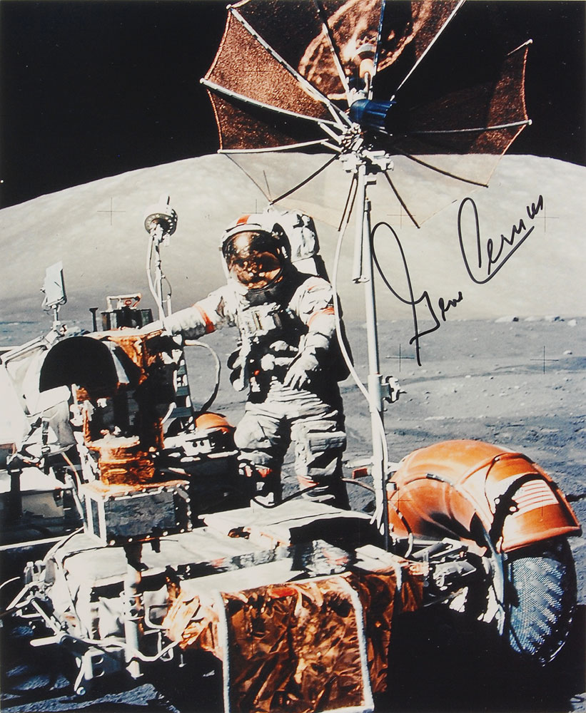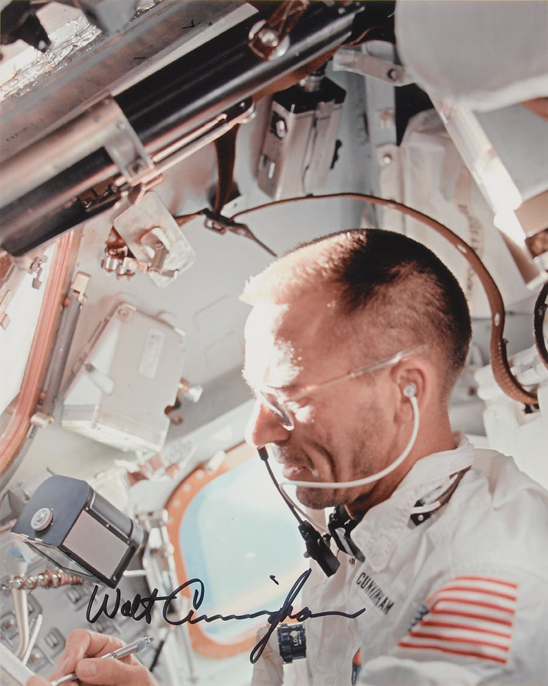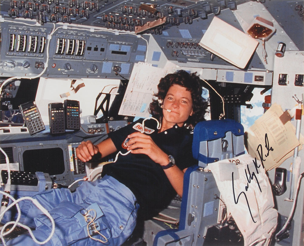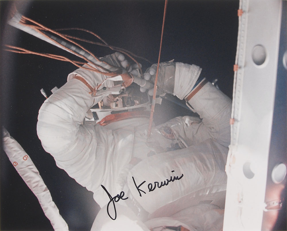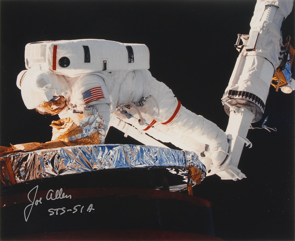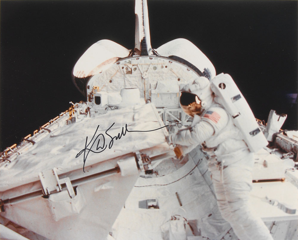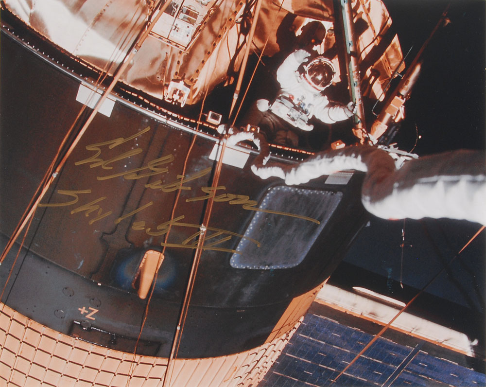 Astronaut Scholarship Foundation collection of twelve color satin-finish photos as part of membership to the 2006 Astronaut Autograph Club, 8 x 10 and 10 x 8, individually signed in felt tip by the astronaut pictured, with some adding their mission designation, including: Story Musgrave, Ed Gibson, Charles F. Bolden, Jr., Gene Cernan, Joe Kerwin, James Lovell, Kathy Sullivan, Sally Ride, Bruce McCandless II, Joe Allen, Fred Gregory, and Walt Cunningham. Includes the original Astronaut Autograph Club box. In overall very fine condition. Each photo is accompanied by an Astronaut Autograph Club letter bearing a preprinted signature. Pre-certified Zarelli Space Authentication.