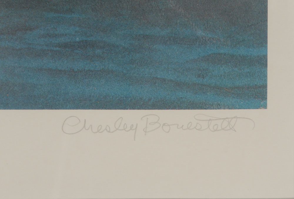 Color 24 x 20 print entitled ‘Saturn As Seen From Titan,’ signed in the lower right in pencil, “Chesley Bonestell.” Double-matted and framed to an overall size of 33.5 x 30. In fine condition. From the collection of Frederick C. Durant III, the former head of astronautics at the Smithsonian’s National Air and Space Museum. Oversized.