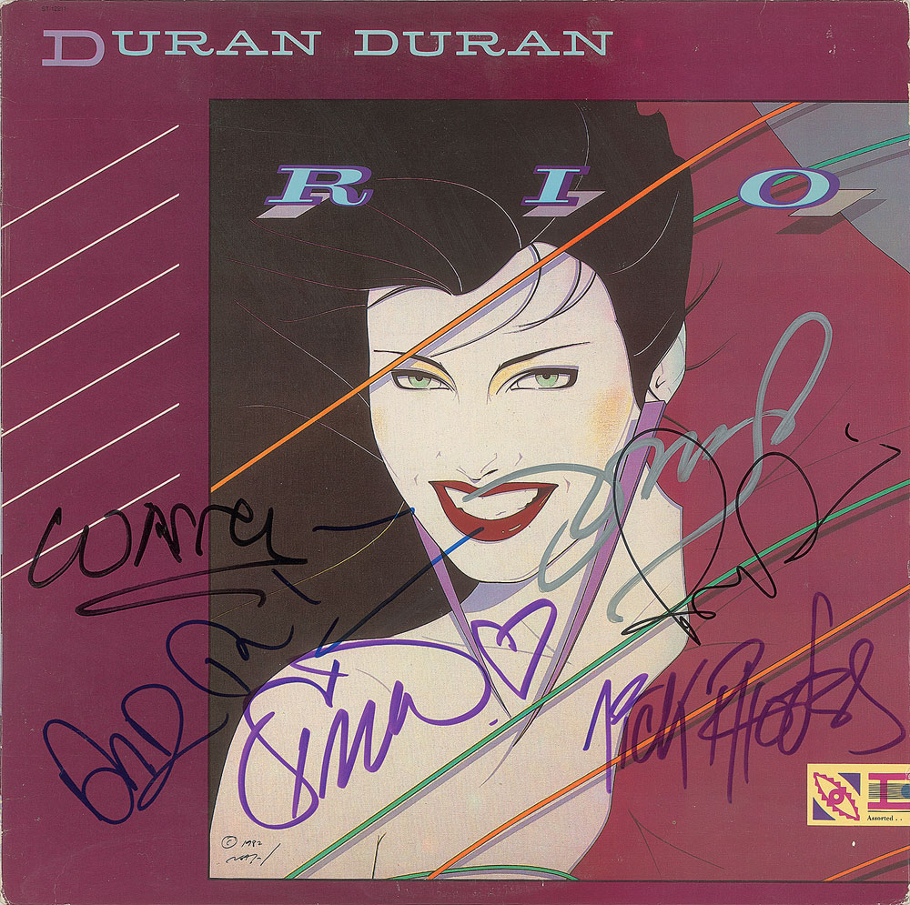 Rio album signed on the front cover in various ink types by Warren Cuccurullo, Simon Le Bon, Nick Rhodes, John Taylor, and Roger Taylor. In fine condition. The record is included. Pre-certified REAL.