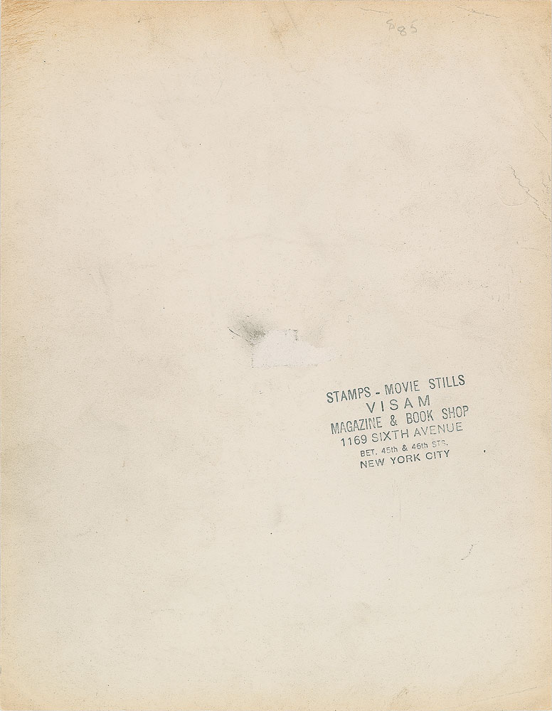 Actor (1892–1962) who portrayed Scarlett O’Hara’s father in Gone with the Wind and Uncle Billy in It’s a Wonderful Life. Vintage glossy 7.75 x 9.75 publicity portrait of Mitchell, signed and inscribed in blue ballpoint, “With all good wishes, Thomas Mitchell.” Reverse bears a Visam Magazine and Book Shop stamp. In very good to fine condition, with scattered creasing and lines of crazing. Pre-certified PSA/DNA.