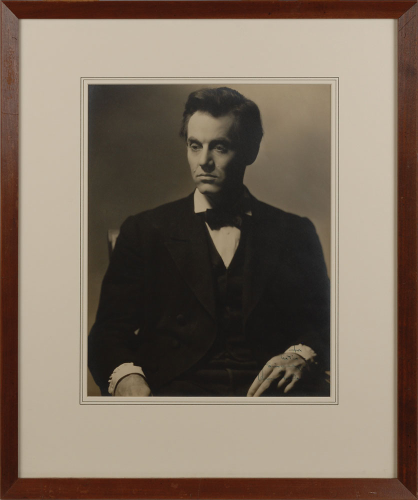 Impressive vintage matte-finish 10 x 13 photo of Fonda in the title role of John Ford’s 1939 film Young Mr. Lincoln, signed and inscribed in the lower right corner in fountain pen, “For Artie—Sincerely, Henry Fonda.” Matted and framed to an overall size of 17.5 x 20.75. In fine condition. Pre-certified PSA/DNA.