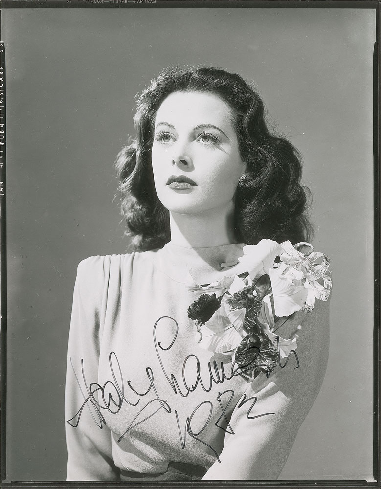 Glossy 8 x 10 photo of the actress, signed in black felt tip, “Hedy Lamarr, 1982.” In fine condition, with a few mild creases. Pre-certified PSA/DNA.
