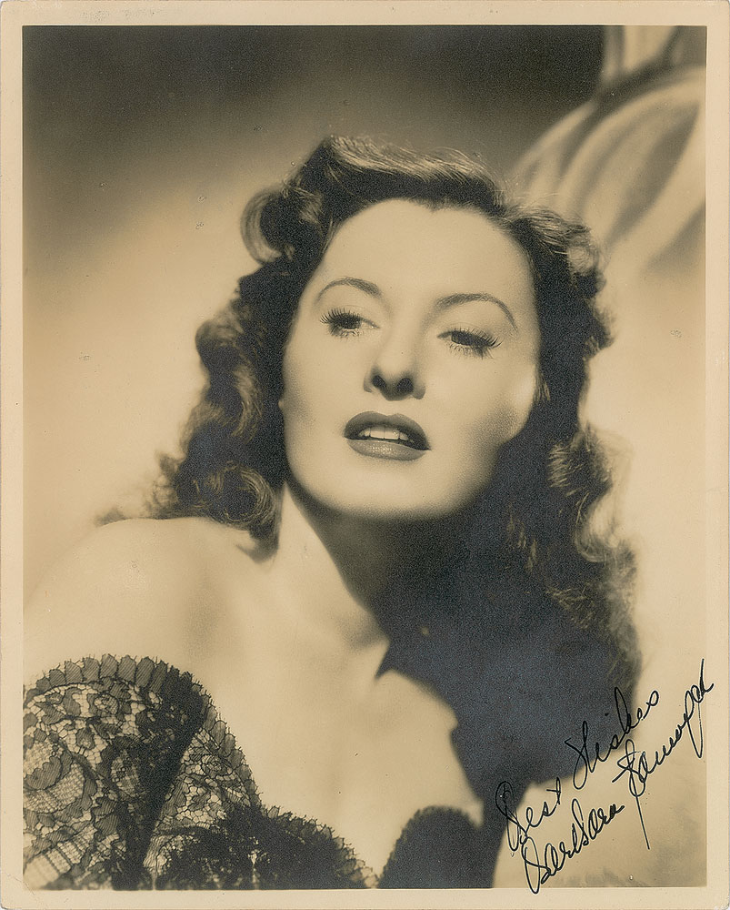 Vintage matte-finish 8 x 10 photo of the actress in an attractive pose, neatly signed in fountain pen, “Best Wishes, Barbara Stanwyck.” In fine condition, with light silvering to her hair. Pre-certified PSA/DNA.